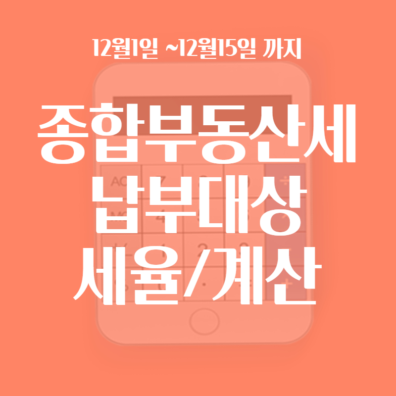 다가오는 12월 1일~15일은 종합부동산세 납부일입니다. 오늘은 종합부동산세에 알아보고 과세대상과 세율에 대해 알아보겠습니다. 오늘부터 홈택스에서 종합부동산세를 조회하실 수 있고 고지서도 오늘부터 순차적으로 발송한다고 하네요. 1세대 1 주택, 다주택자 분들은 소유하신 주택이 종합부동산세 해당하는지 미리 확인해보실 수 있습니다.