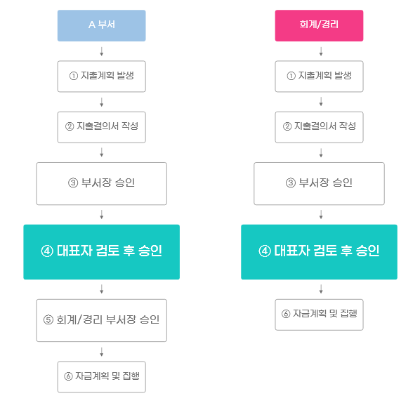 - 회사 운영에 관한 모든 지출에 대해 작성하고, 지출결의서 승인 후 지출합니다.